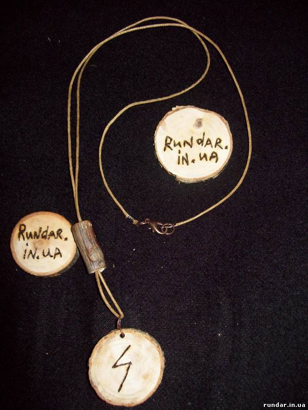 Руна зроблена з натурального дерева, (можна вибрати різну деревину для виробу), ручна робота, колір шнурка можна вибрати різний. дерево ялина